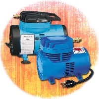 Portable, oil-less diaphragm air compressors provide constant air pressure for airbrushing.